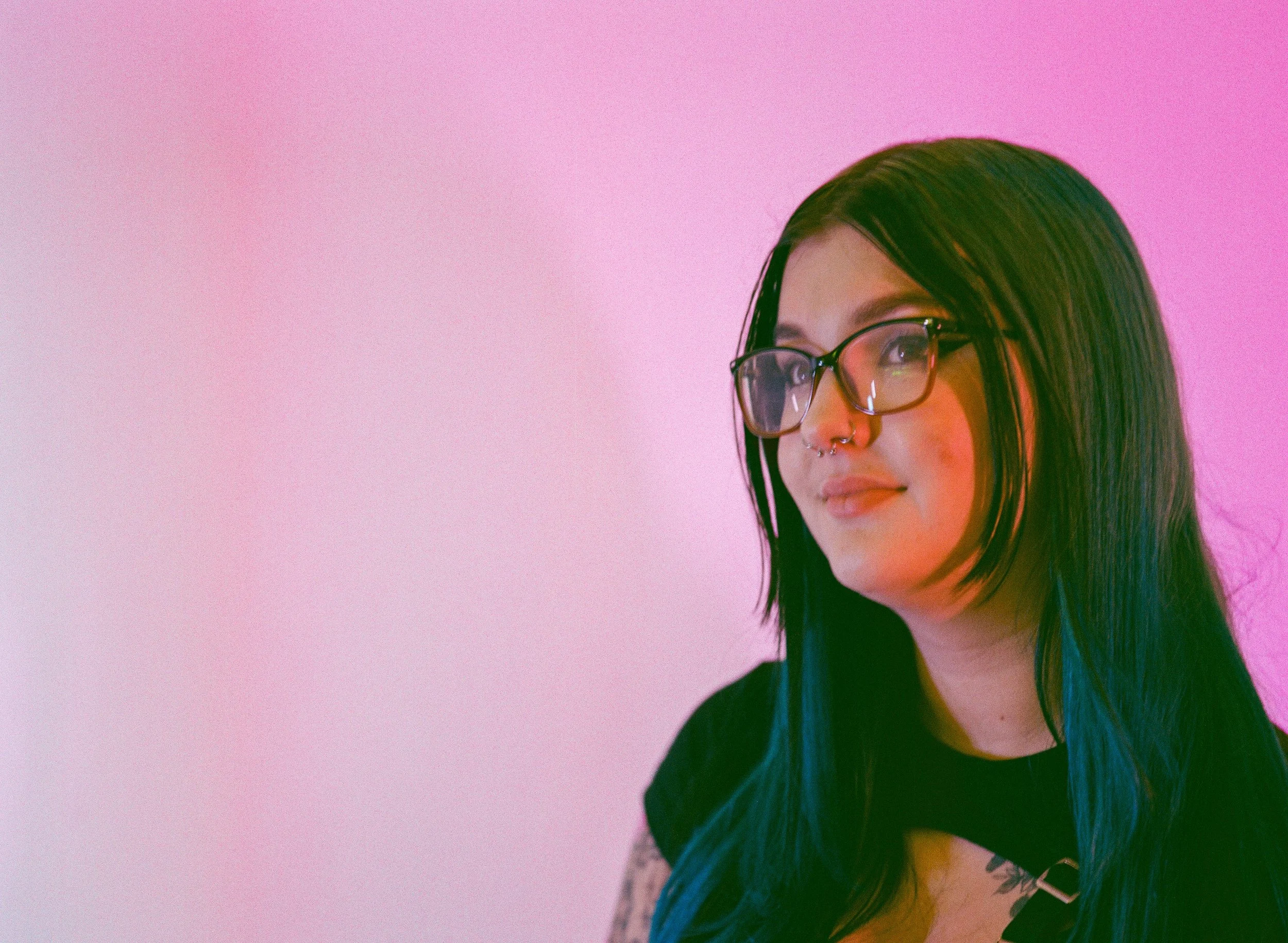 Megan’s style of music is a mix of acoustic and punk, so we thought that her aesthetic should match. I am very pleased that the warm toned film has enhanced the colourful backdrop colours we used, and the size of the film exposures has rendered wonderful images that hopefully can be used in a range of formats.